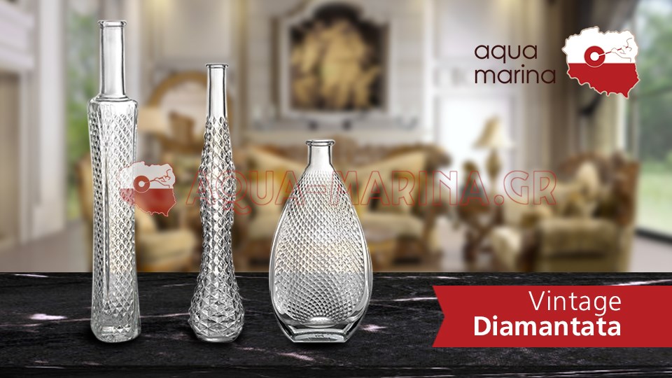 Σε αυτή την ενότητα θα βρείτε όλα τα μπουκάλια με ύφος Vintage και Diamantata. Κατάλληλα για την συσκευασία αλκοόλ και λαδιού. Η όμορφη όψη τους προσδίδει στυλ και υπεραξία στο ποτό και συγχρόνως λειτουργεί ως διακοσμητικό στον χώρο σας.