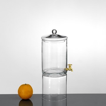Γυάλα με βρυσάκι και καπάκι. Η πλαστική βρύση λειτουργεί ως on/off. Υπάρχει η δυνατότητα αφαίρεσης της γυάλινης βάσης. Σχεδιασμένη για το εντυπωσιακό σερβίρισμα ποτού και την διακόσμηση του χώρου σας.