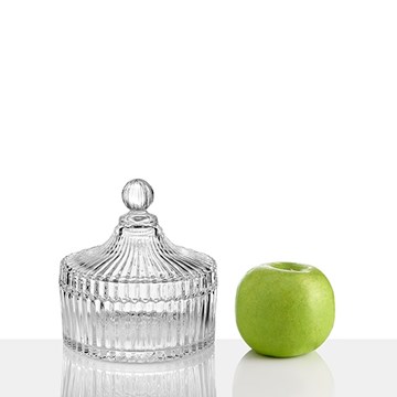 Γυάλινη φοντανιέρα από φυσητό πεντακάθαρο γυαλί για την ανάδειξη του τρόφιμου.