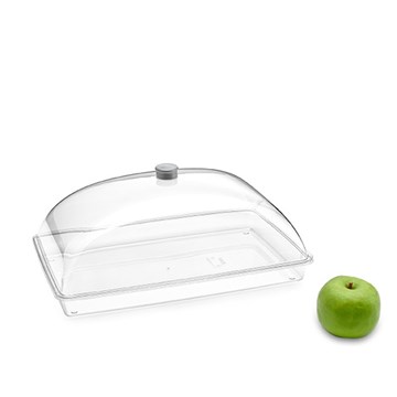 Ακρυλική βιτρίνα σέτ με κάλυμμα. Λειτουργεί ως μέσο παρουσίασης γλυκών και αλμυρών τροφίμων και συχρόνως προστατεύει απο το εξωτερικό περιβάλλον.