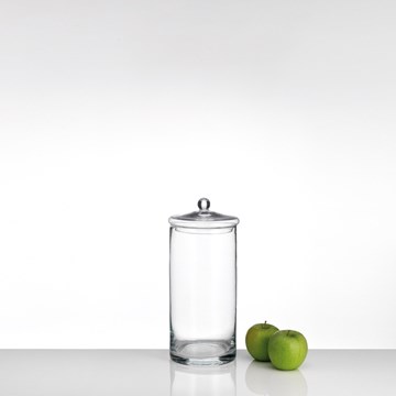 Γυάλινο βάζο κύλινδρος με καπάκι από φυσητό γυαλί. Αποτελεί ιδανική επιλογή για event καθώς αναδεικνύει τα τρόφιμα και συγχρόνως διακοσμεί τον χώρο δεξίωσης ή μαζικής εστίασης. Μπορεί, επίσης, να χρησιμοποιηθεί για τους ίδιους λόγους και στον προσωπικό σας χώρο.