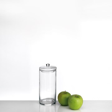 Γυάλινο βάζο κύλινδρος με καπάκι από φυσητό γυαλί. Αποτελεί ιδανική επιλογή για event καθώς αναδεικνύει τα τρόφιμα και συγχρόνως διακοσμεί τον χώρο δεξίωσης ή μαζικής εστίασης. Μπορεί, επίσης, να χρησιμοποιηθεί για τους ίδιους λόγους και στον προσωπικό σας χώρο.