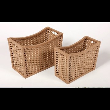 Σειρά καλαθιών από φυσική πλέξη αποθήκευσης και ανάδειξης προϊόντων και τροφίμων.