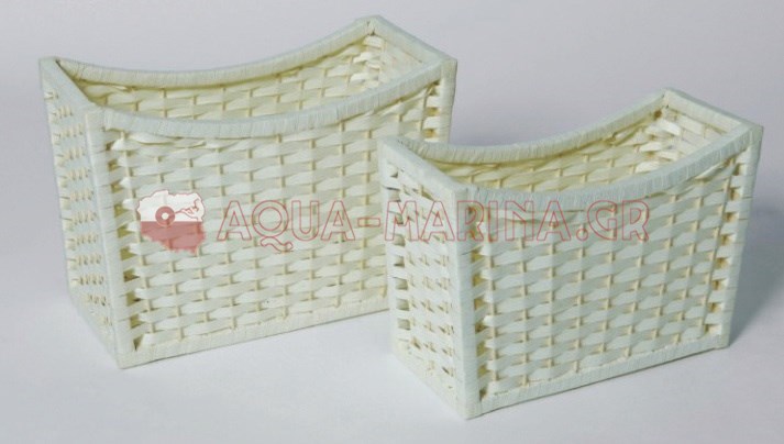 Σειρά καλαθιών από φυσική πλέξη αποθήκευσης και ανάδειξης προϊόντων και τροφίμων.