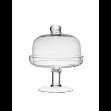 Βάση τούρτας με πόδι και καπάκι από φυσητό γυαλί. Ιδανική για την ανάδειξη και παρουσίαση του γλυκού σας. Το συγκεκριμένο προϊόν συνεισφέρει στην διακόσμηση του χώρου σας λόγω της κομψής σχεδίασης του.