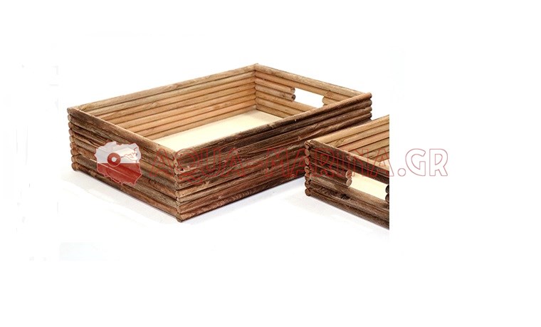Σετ ξύλινων δίσκων παρουσίασης. Μπορεί να χρησιμοποιηθεί ως μέσο ανάδειξης τροφίμων αλλά και διακοσμητικών αντικειμένων. 40 Χ 40 ΧΗ 5CM - 35 Χ 35 ΧΗ 5CM