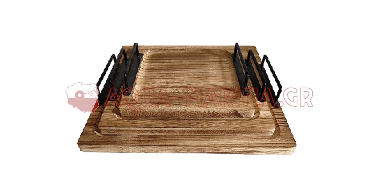 Σέτ 3 ξύλινων δίσκων με μεταλλικό χερούλι . Η τιμή αγοράς αφορά και τα 3 μαζί!
