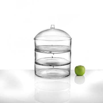 Γυάλα στοιβαζόμενη με plexiglass άθραυστο καπάκι. Ιδανική για την παρουσίαση και ανάδειξη τρόφιμου. Η αναγραφόμενη τιμή είναι ανά όροφο.