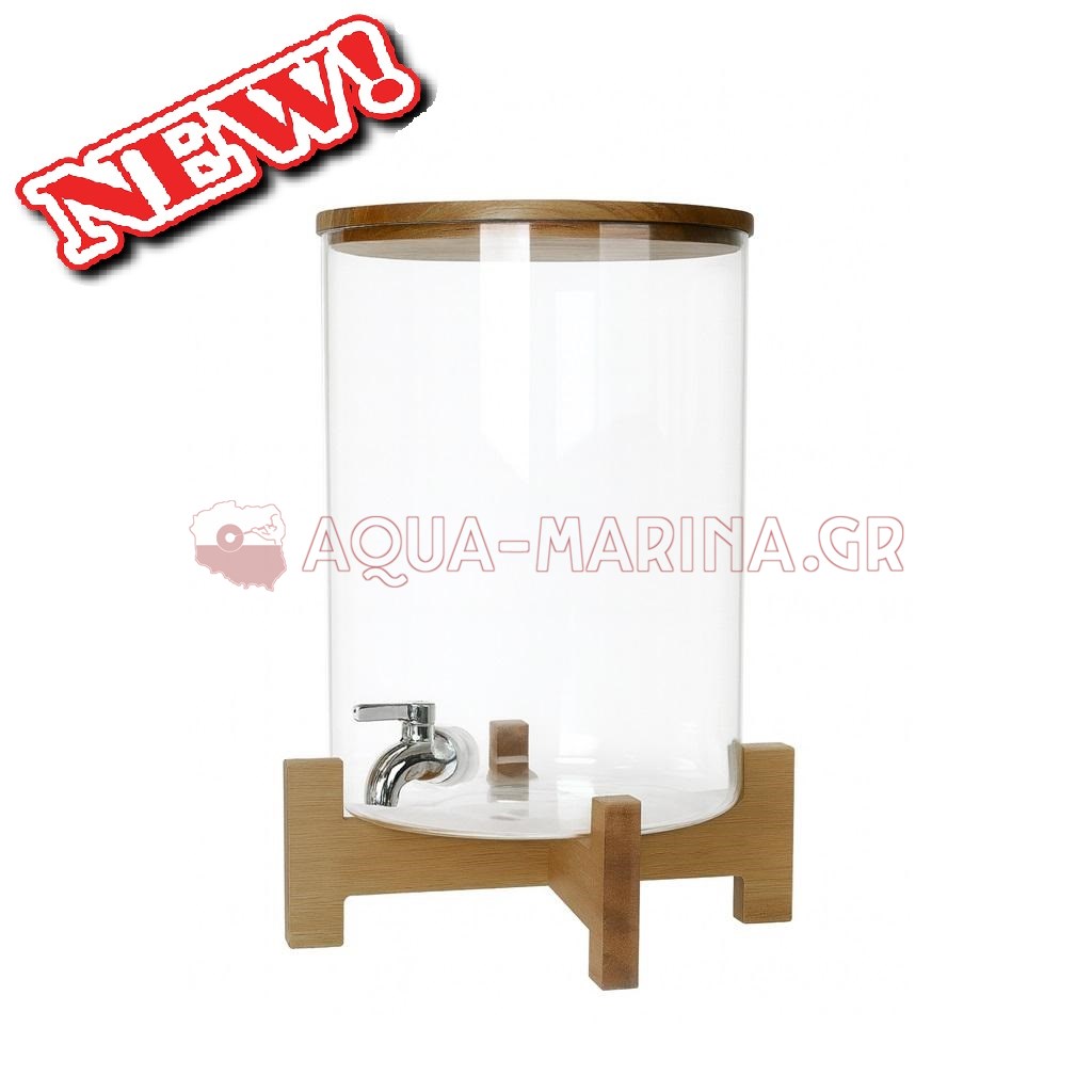 Σειρά απο γυάλες με ανοξείδωτο βρυσάκι και ξύλινη βάση και καπάκι .