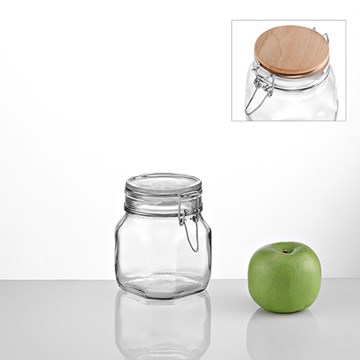 Γυάλινο βάζο με φαρδύ καπάκι και ειδικό κλείσιμο για αεροστεγανότητα. Κατάλληλο για την αποθήκευση τροφίμων.